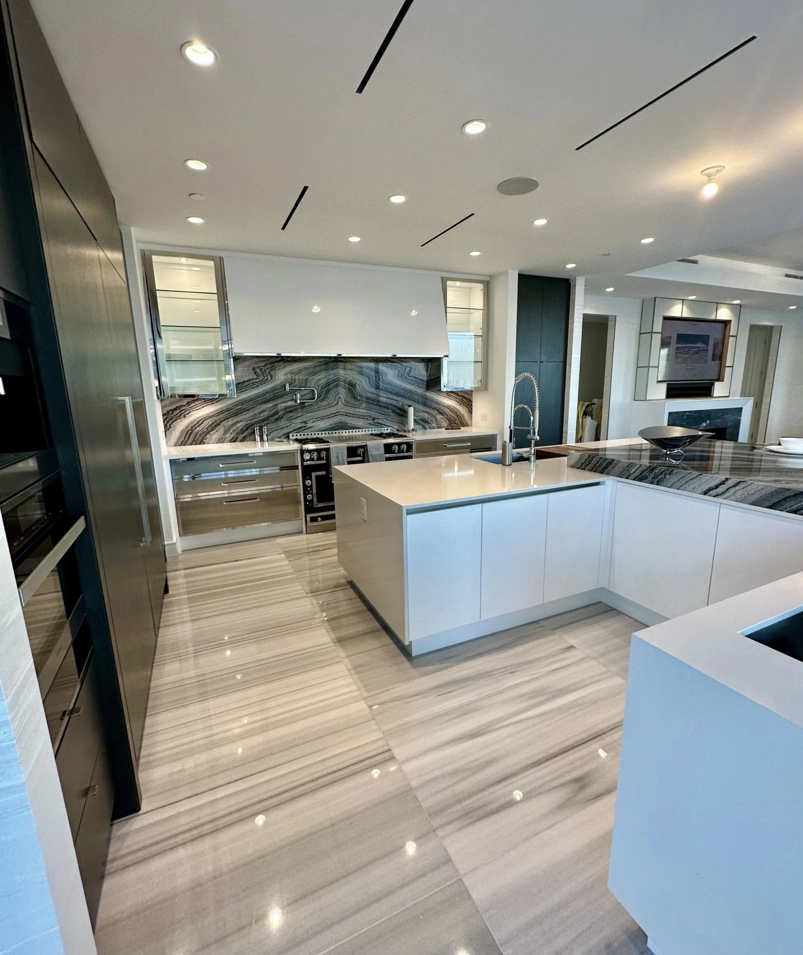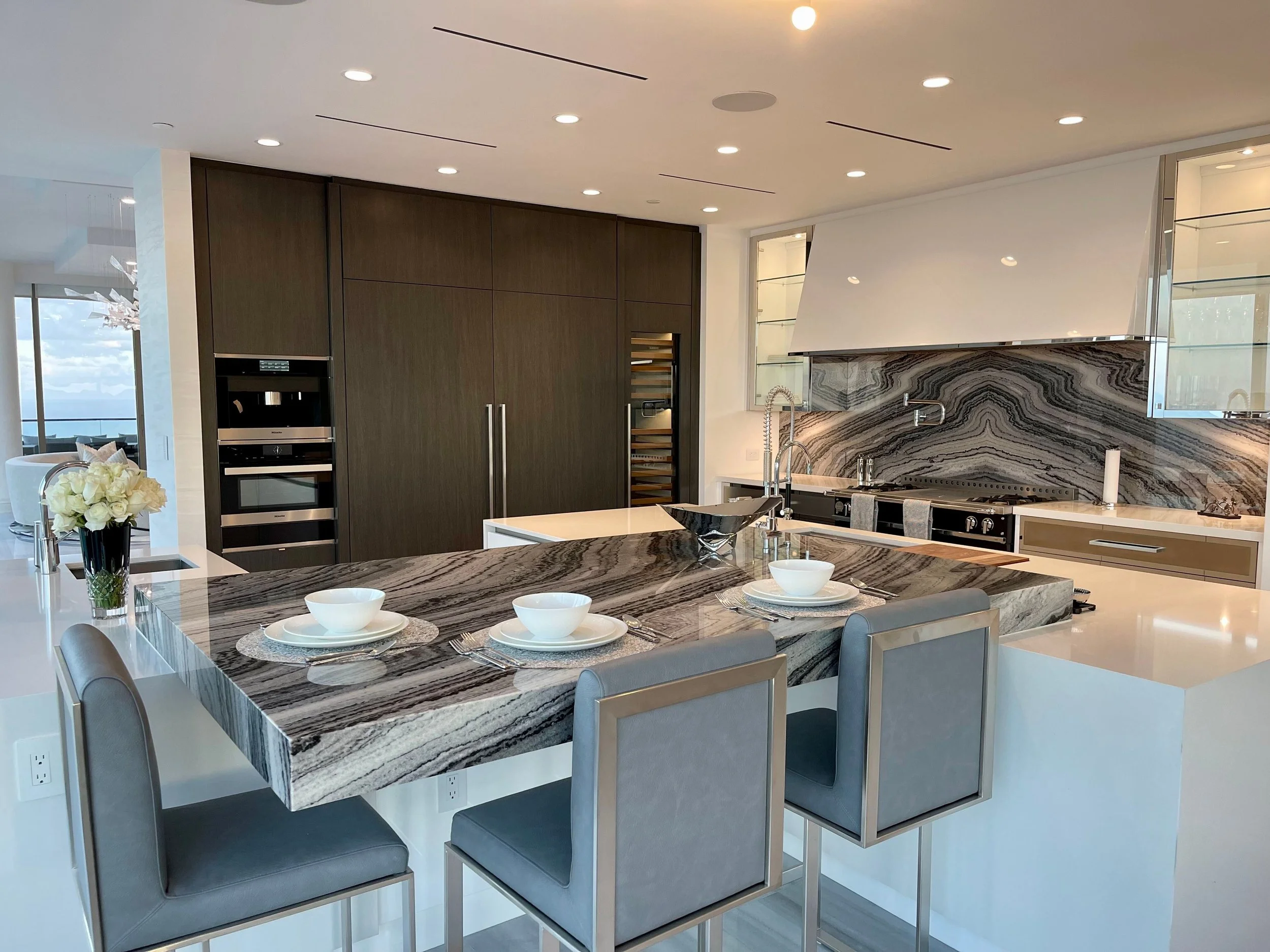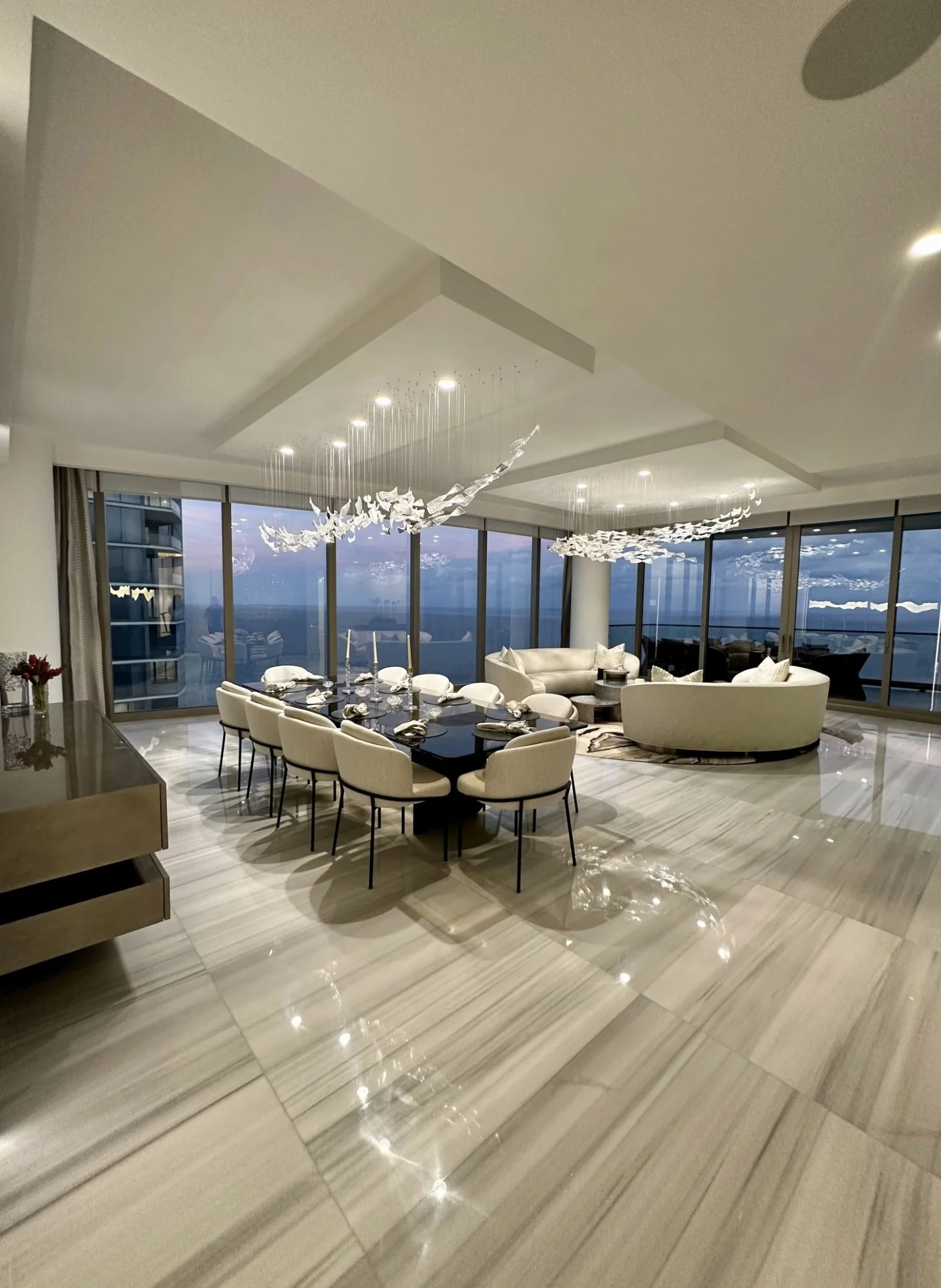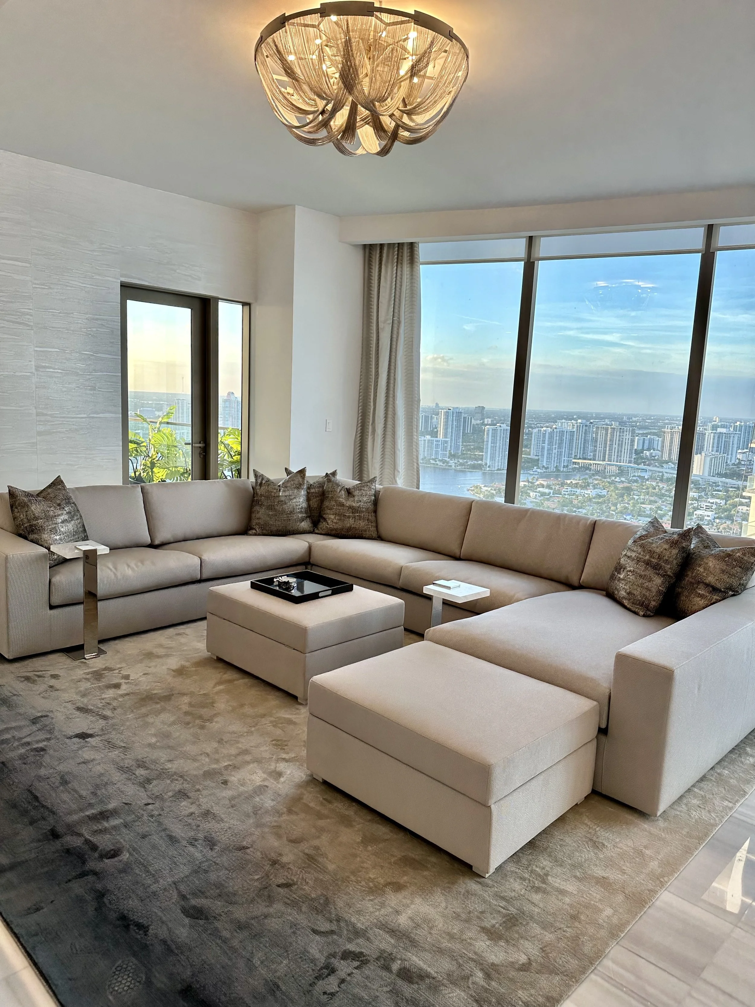 This 6,000 square foot condominium is located within the premier Estates at Acqualina building in Sunny Aisles, FL. The natural surroundings inspired the selection of furniture and finishes for this one of a kind project.